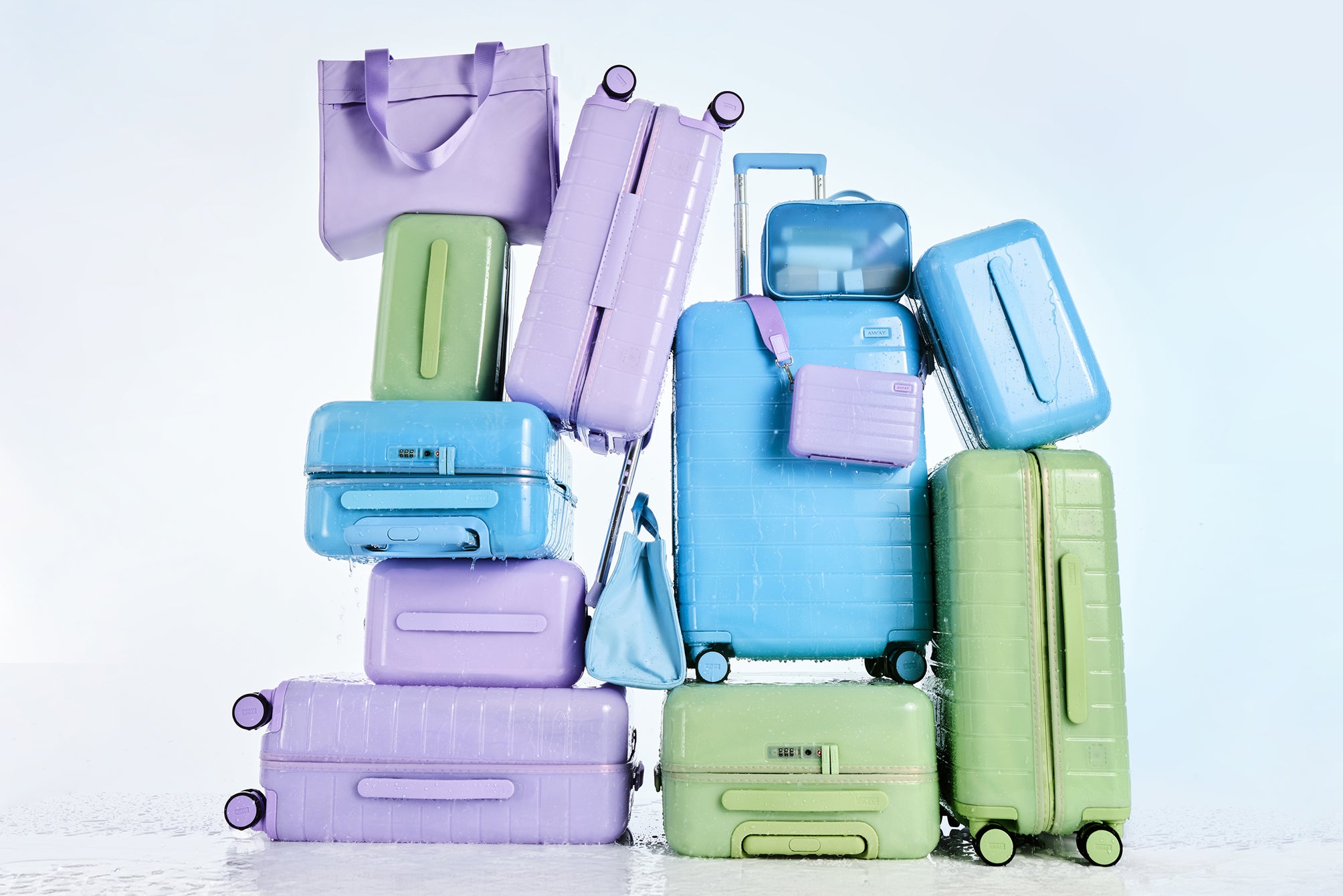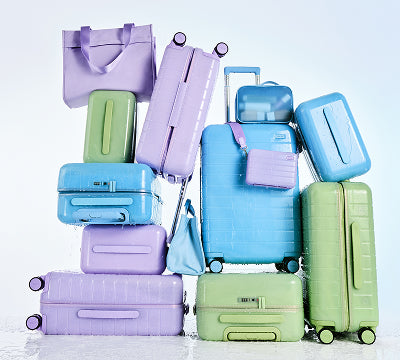 Three limited-edition hues, one glossy finish. These new suitcases, bags, and accessories are built to go, and designed to glow.