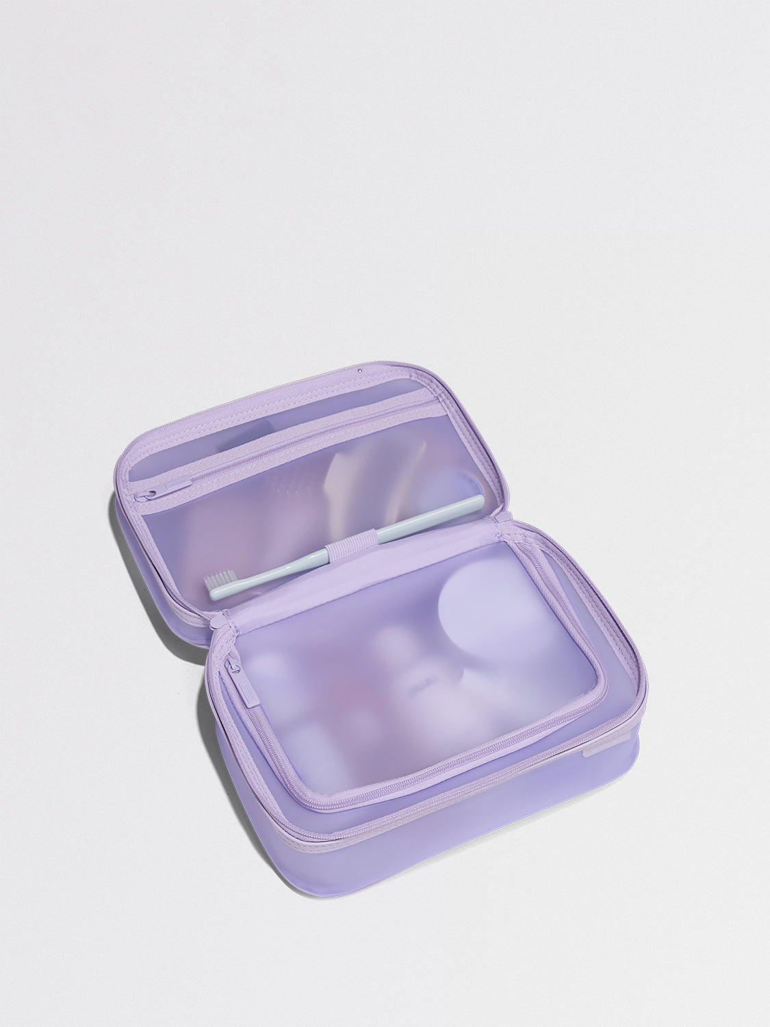 There's a lot to love about our toiletry bag collection, from the multiple inner compartments to the exterior pocket and wraparound zip closure. The Small Toiletry Bag has all the organization you need for shorter trips, with a handy clamshell opening for lay-flat use. One pocket has a transparent cover, while the other features mesh, keeping all of your things visible and secure. That means plenty of storage for small bottles, brushes, wipes, and other essentials.