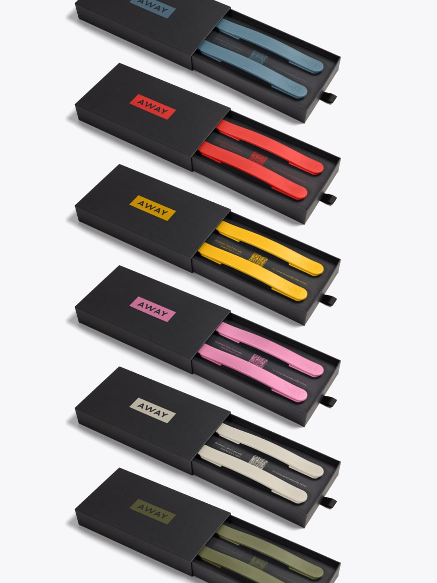 Our new custom sets are available at Away retail locations for purchase by eligible suitcase owners.