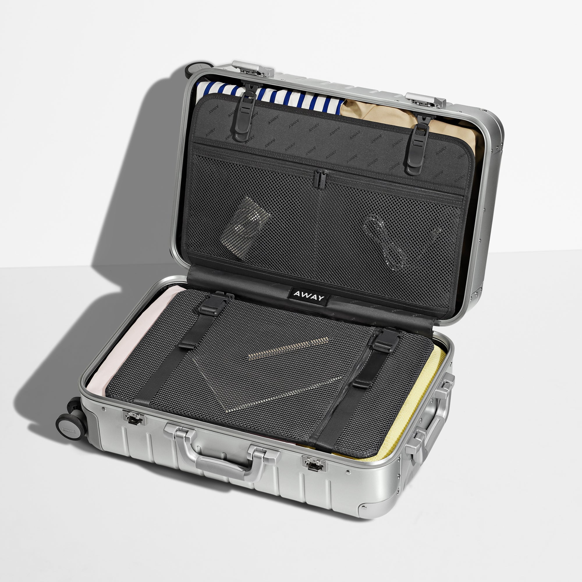 A central panel with a mesh top for the things you need quickly. A hidden laundry bag to keep dirty things dirty and clean things clean. Plus, our signature compression system with a buckle to help you pack even more in.